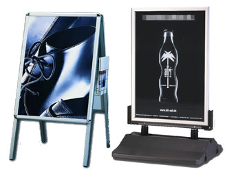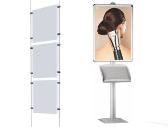 - Porte affiche : sur pied ou à suspendre pour vos vitrines ou affichage en magasin