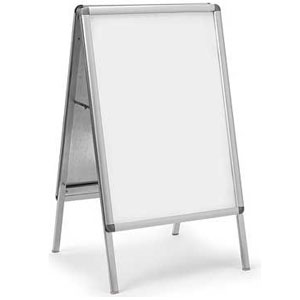 Les chevalets porte affiches A0 encore appelés chevalets stop trottoirs A0 vous permettent d'être vu et d'afficher votre activité ou actions commerciales dans la rue, (attention certaines municipalités n'autorisent pas l'utilsation sur la voirie) dans les centre-villes particulièrement les zones piétonnes mais aussi dans les galeries marchandes. Les chevalets portes affiches A0 sont encore utilisés pour signaler un commerce, un restaurant, un magasin ou même un événement, des informations évènementielles comme une promotion, la période des soldes, ...