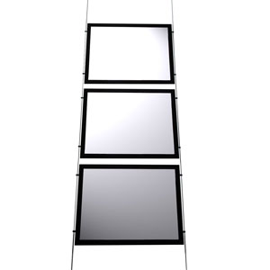 Découvrez de nombreux formats de kits d'affichage plexiglas suspendu par câble prêts à poser :