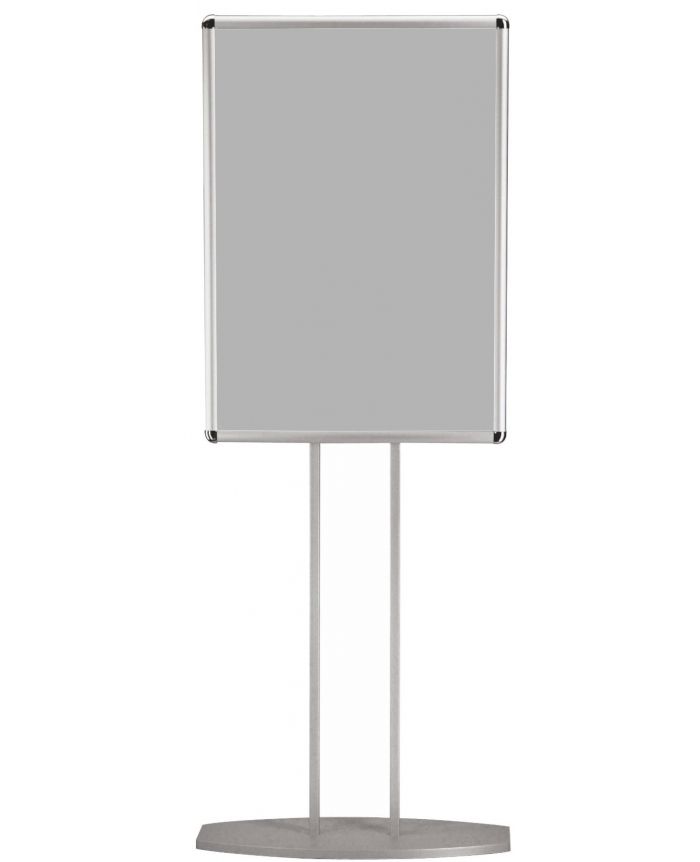 Ce porte affiche s'intègre harmonieusement dans une variété d'environnements commerciaux, que ce soit dans des magasins de détail, des halls d'accueil ou lors de salons professionnels. Son design épuré et sa couleur neutre en gris aluminium en font un choix polyvalent qui s'adapte à différents décors et ambiances de vente.