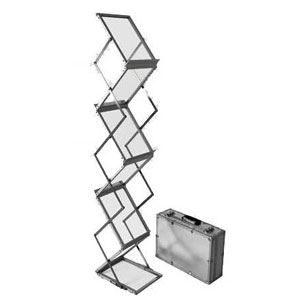 Pour les salons, privilégiez les modèles pliables et légers. Un porte-brochures pliable en métal ou en tissu se transporte facilement dans votre voiture, se monte en quelques minutes sans outils, et se range à plat entre deux événements. Vérifiez le poids : au-delà de 8 kg, c'est pénible à porter seul sur de longues distances dans un hall d'exposition. Les modèles entre 4 et 6 kg sont idéaux.