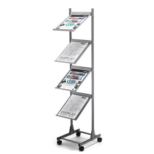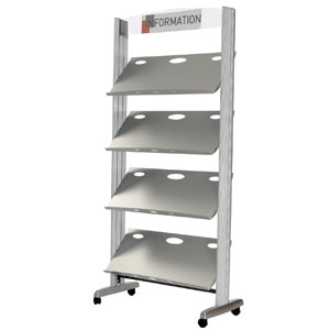 P&P vous présente parmi tous les présentoirs ci dessous une large gamme de présentoirs sur pied pour valoriser vos documents A4, et ce aussi bien en petite qu'en grande quantité avec des présentoirs avec 1 seul bac ou plusieurs bacs afin de valoriser des documents A4 différents ou identiques mais en grand nombre. Les porte brochures A4 sur pieds ci dessous sont réalisés en différentes matières (métal, plexiglas, plastique, tissu..) afin de s'adapter à tous vos besoins et tous vos budgets.