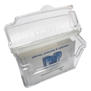 - Le porte cartes de visite en plexiglas est transparent, il s'adapte à tous les environnements. Quelle que soit la décoration de votre point de vente, vous avez la possibilité d'installer aisément notre présentoir en plexiglas. Sa transparence lui permet effectivement de se marier avec n'importe quel objet décoratif.