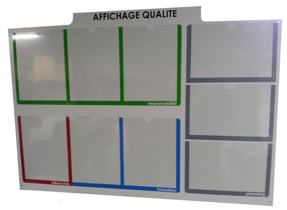 Découvrez ci dessous un panel des tableaux avec les différentes matières ci dessus nommées en différents formats qui raviront tous les environnements scolaires, et professionnels. Cependant notre équipe commerciale peut vous aider à concevoir et réaliser le tableau de vos désirs avec le format ou le marquage que vous souhaitez ou des portes documents afin de réaliser le tableau d'accueil de votre entreprise le tableau satisfaction qualité ou le tableau de communication interne de votre société. Renseignez vous !