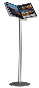 Doté d'une conception élégante et pratique en aluminium anodisé, ce pupitre sur pied offre une solution de présentation optimale pour vos documents professionnels. La base lestée assure une parfaite stabilité tandis que le support central pivotant permet une consultation aisée des documents en recto-verso.